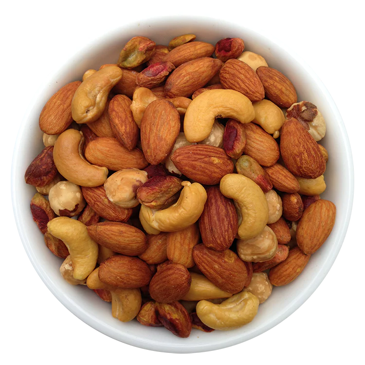 A wholesome slightly salted blend of almonds, hazelnuts, pistachios, and cashews, offering natural flavors.